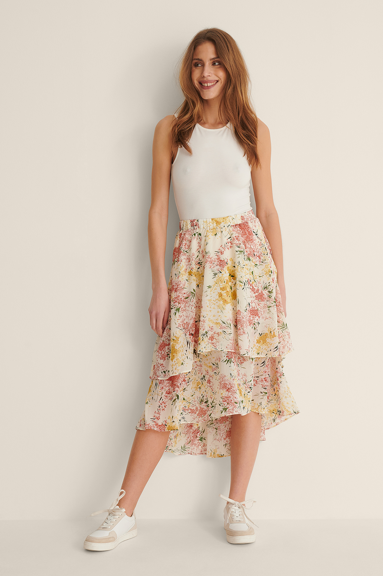 Flowy Midi Elastic Skirt Flower Na Kd Com